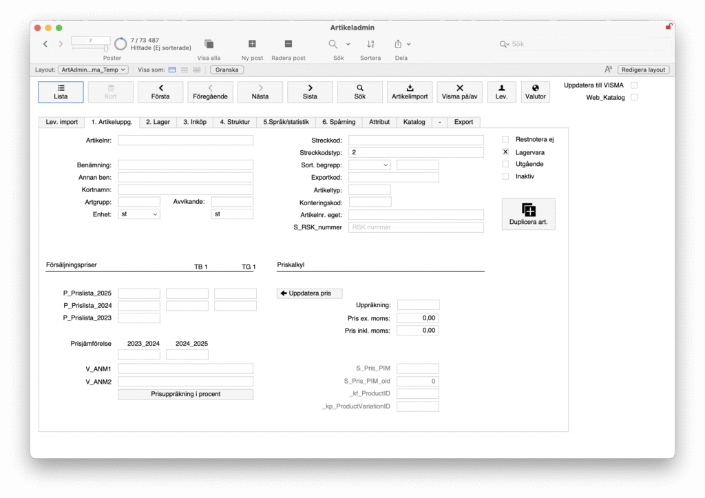Kopplingen till affärssystemet ger alltid aktuella fakta och priser till Woo och print.